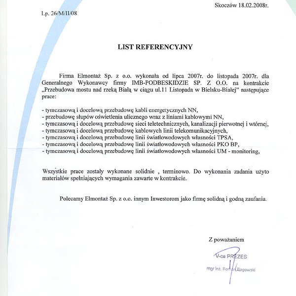 GPZ Sporysz -GPZ Jeleśnia -budowa linii światłowodowej o dł. ok. 10 km wraz z odgałęzieniami. |