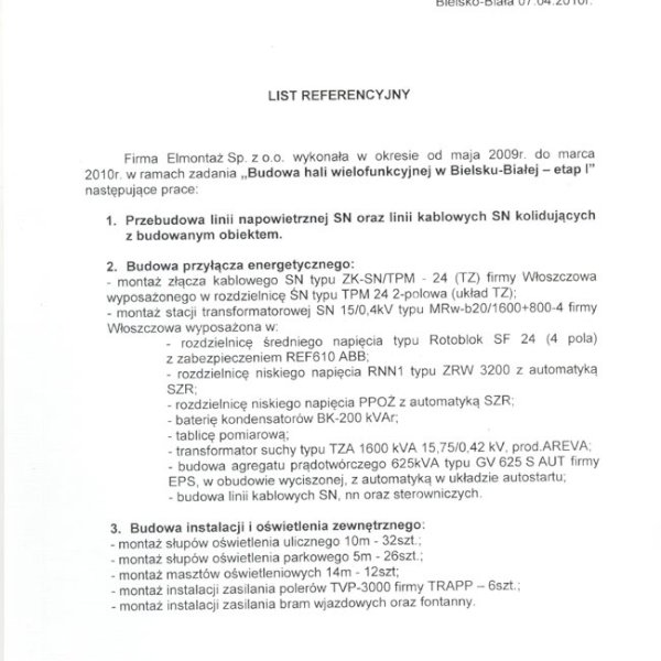 Kompleksowa instalacja oświetlenia i prac elektroenergetycznych w hali Odlewni Magnezu w Bielsku- Białej. |