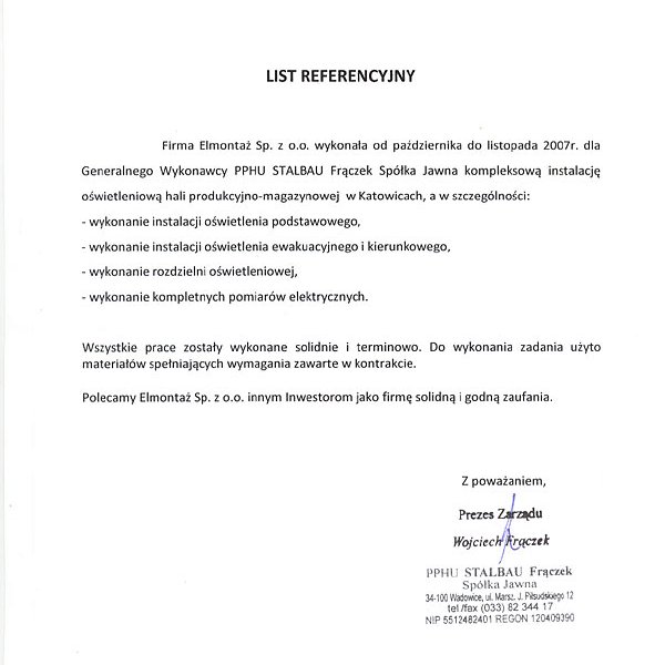 Kompleksowa instalacja oświetleniowa hali produkcyjno-magazynowej w Katowicach. |